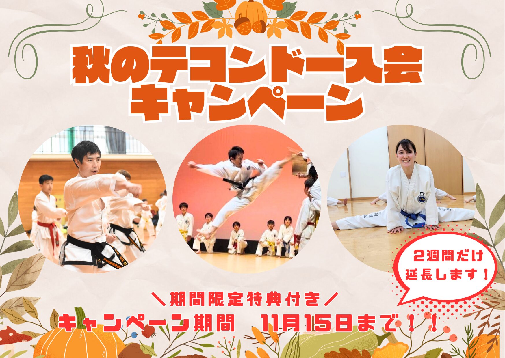 何かを始めるのに遅いということはありません。今日が人生で一番若い日!少しでも興味があったらテコンドーを体験・見学してみませんか?